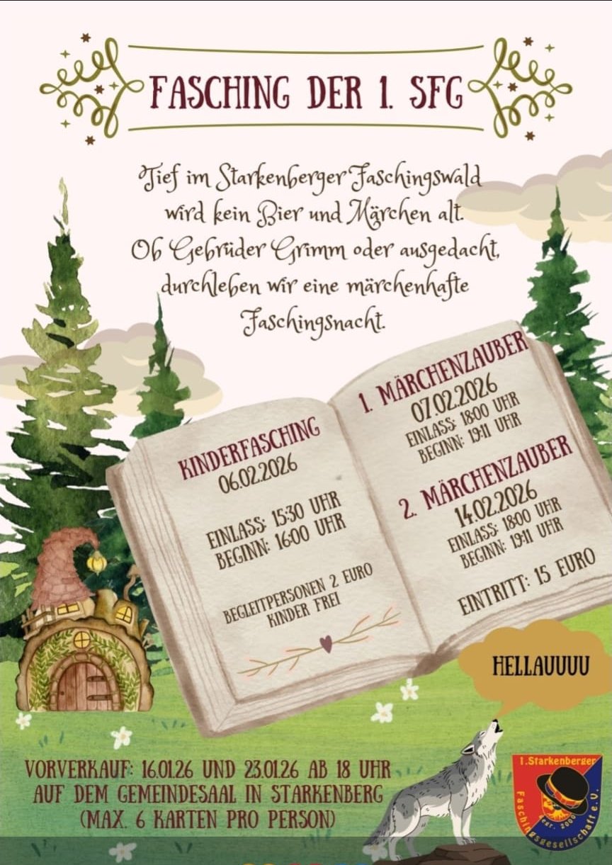Fasching 2026 Die 1. Starkenberger Faschingsgesellschaft lädt ein zur Faschingssaison 2026.Thema: Märchenzauber